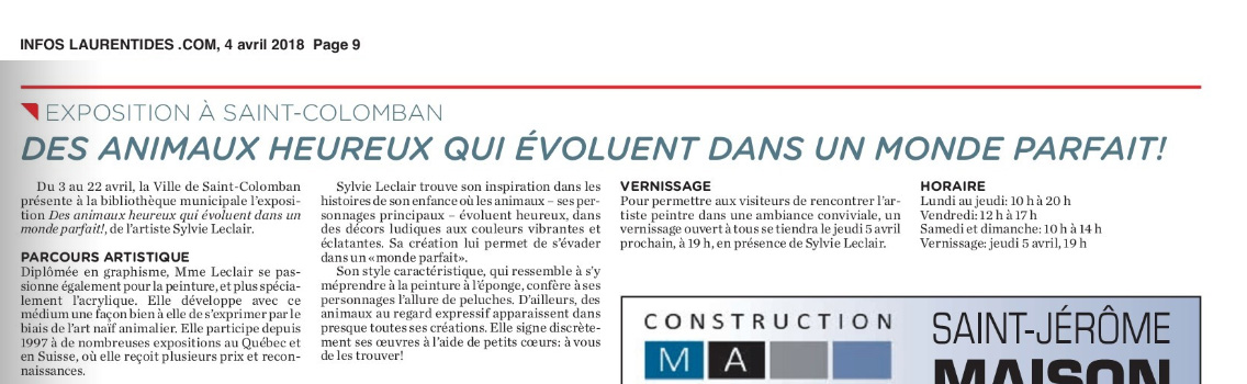 [ Article du journal Infos Laurentides du 4 avril 2018 ]